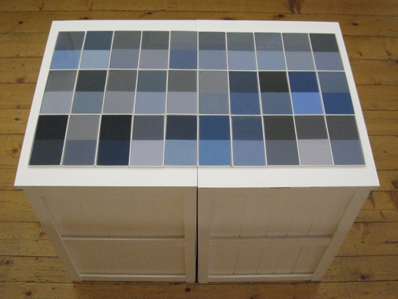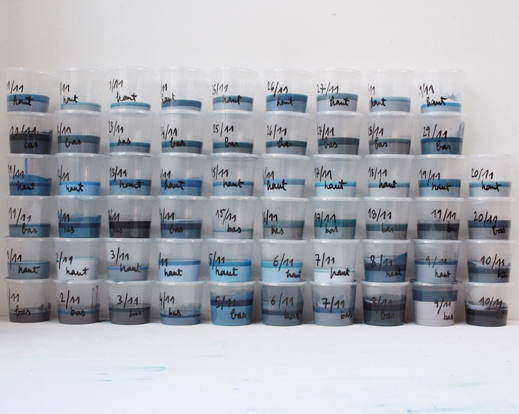 «Mises à vue» se développe selon le principe du nuancier. Le fameux Hyper-Paysage a été photographié du même angle chaque jour du mois de novembre à Cully, envoyé à l’artiste à Paris qui l’a transposé en deux tons superposés, peints sur une plaque de verre, comme les symboles chromatiques d’une journée. Cette interprétation arbitraire d’une réalité soulève la réflexion à propos du passage, du trouble perceptif et de la disparition de l’origine, présente dans son travail en général.