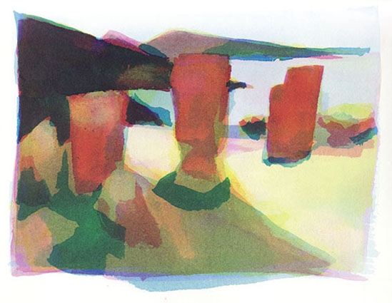 Christian Stuker peint principalement sur papier de petit format, qu’il transpose parfois en grand ou en documents variés: Il aime passer d’une technique à l’autre, en exploration permanente. Ici ses champs de recherche sont les paysages, urbains ou naturels, dont il réduit les formes allant jusqu’à l’abstraction.