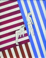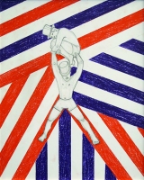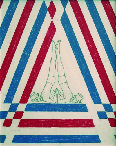 La série présentée ici est unique car il est rare que les deux artistes, aux caractères très différents, mêlent, au-delà de leur musique, leurs 4 mains sur le support d’une seule oeuvre. Évidemment, en tant que graphistes et plasticiens, il était logique qu’un jour ou l’autre les deux collègues se retrouvent sur le terrain du papier. Après vingt années d’expression sonore violente, à travers onze morceaux répétés incessemment de 1994 à 2014 comme des mantras, de scènes musicales en scènes théatrales et de galeries en musées (voir le livre «Minimetal 11 mantras», Ed. Patrick Frey), c’est en 2015 qu’est réalisé, au calme, «Minimetal Circus». Il raconte en une série de dessins la difficulté de travailler en duo (ici la prouesse technique des acrobates dessinée au crayon gris par Emch), la répétition et la recherche incessante de la variation du même thème (les traits au néocolor par Goei). Une série d’exercices, comme un nouveau mantra.