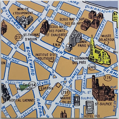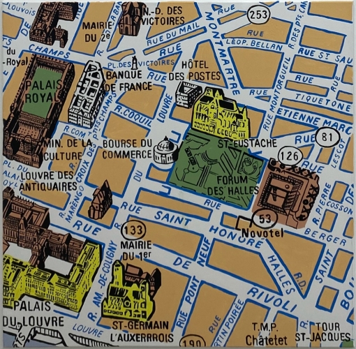 Il invite ainsi le spectateur à redécouvrir un Paris sensible et émotionnel, celui du plan dessiné en 1959 par Blondel-La Rougery et réédité en 1990 par Le Printemps, comme une ultime trace d’une manière de représenter la ville aujourd’hui disparue.